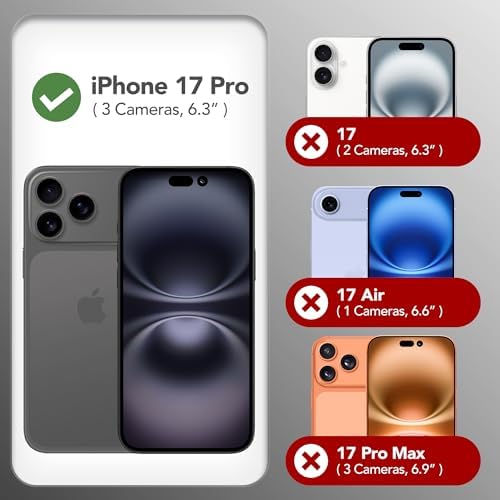 - Compatibility: This phone case is only for iPhone 17 Pro 6.3 inch! The Precise cutout design ensures easy access to all buttons, speakers, and charger ports. The loudspeaker is equipped with a dust hole to prevent fine dust and particles effectively