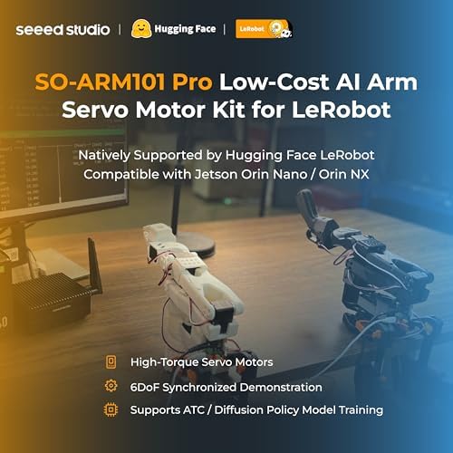 - Optimized AI Arm Kit for LeRobot & Hugging Face Projects – The SO-ARM101 is an upgraded low-cost robotic arm servo motor kit designed for AI robotics enthusiasts and developers. Fully compatible with LeRobot and Hugging Face frameworks, it supports imitation learning and reinforcement learning, making it ideal for real-world robotics applications. (3D-printed parts not included.)