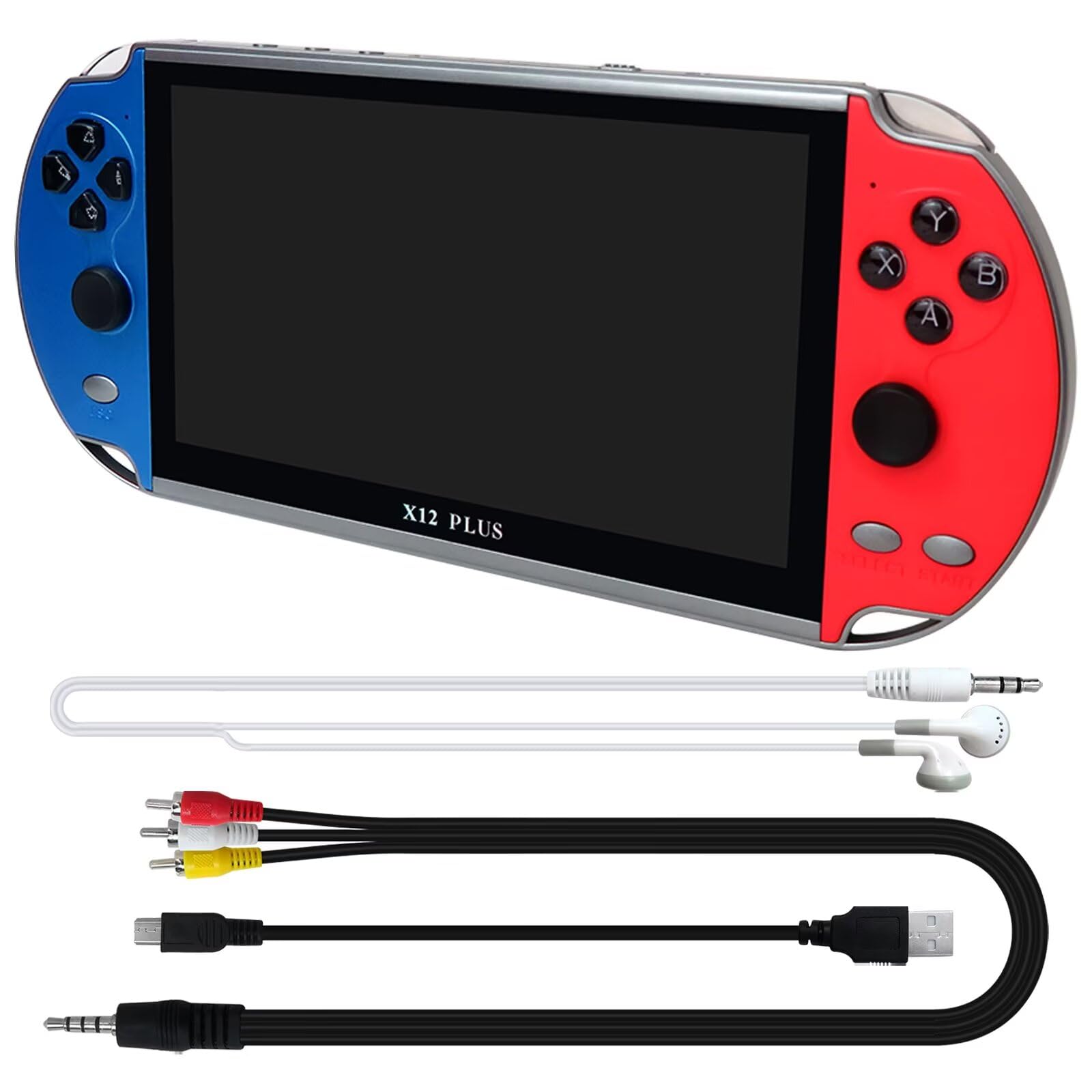 Plus Handheld Game Console 5.1" Portable Retro Game Console 8G Built-in 10,000 Games Classic Game Console, Play time 1-4 Hours, Blue and Red