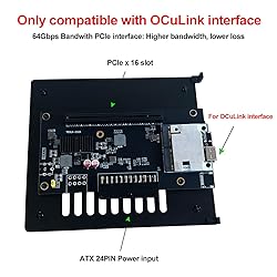 ONLY compatible with OcuLink interface laptop devices, such as laptop,mini PC,gaming machine...etc. Built and compatible with OcuLink 4i (PCIE4.0x4) uplink and PCIEx16 (PCIE4.0x4) downlink, it supports data transfer rates up to 64Gbps. It does NOT support hot plugging, Please connect all cables well and then turn on the ATX power and then turn on your laptop, after used please turn off your computer and ATX power first before unplug the cable. The cable has a fixed locking interface and you need to press the switch to unlock and then unplug it. Please notice that forced unplugging will cause damage to the ports. Only support ATX power supply, Please prepare the power supply according to the power of the PCIe card.(ATX power supply not included in the package). Please use our cable inside the package, other cable may not working properly. Package contain: 1*Dock, 1*cable, 1*user manual, 1*screw bag.