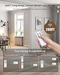 Programmable and Expandable - The remote control accessory can be expanded with additional treewell wireless light switches and receiver kits, remote control outlets, remote control light sockets; allowing you to activate multiple devices with one switch or control one device with multiple switches. Easy pairing and programming. Free Pairing, No Interference! - treewell remote control set uses rolling/dynamic codes, ensuring that you can install multiple separate sets in the same house without any conflicts or interference. An effortless and reliable way to remotely control all your devices without affecting the existing system. Easy to control 3 devices from a single remote, you can turn them all ON/OFF together or individually with a click. The remote has extra room to label buttons, instantly identify and remember devices easily. Simplify your life and add convenience to your home. 200 FT Longer Remote Range - Strong RF signal of this remote light switch can work through walls, doors, and windows, giving you the freedom to place the switch wherever it's most convenient for you. lag-free response when turning devices on/off from across the room.