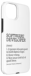 Software Developer tee for men, women features "Software Developer Job Definition" with cool dictionary design. Ideal for Software Developer who're proud and love their job to wear it during work and show your sense of humor and spread some joy. This Software Developer definition apparel is the best birthday gifts for Software Developer, dad, father, mother, wife, husband, brother, sister, friend in birthday, christmas, thanksgiving or any other occasion. They will absolutely love it! Two-part protective case made from a premium scratch-resistant polycarbonate shell and shock absorbent TPU liner protects against drops Printed in the USA Easy installation