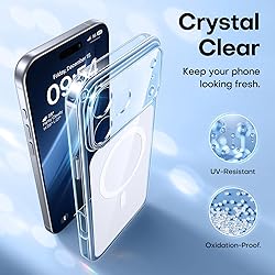 Super Magnetic Attraction: The iPhone 17 Pro Max Phone Case is embedded with 38 N52 magnets, boasting a magnetic attraction strength of up to 18N. Compared to the official magnetic case, its magnetic strength is increased by more than 50%. Moreover, it is compatible with all magnetic accessories and third-party Qi-certified wireless chargers, ensuring faster and easier charging. Let you enjoy a smarter and more effortless living experience Military-grade Protection: The TAURI for iPhone 17 Pro Max Case is certified in drop tests. It combines a soft frame and a hard PC back cover with four built-in corner airbags to absorb impact, safeguarding your new phone from accidental drops, bumps, and scratches 360° Full Protection: This Shockproof Magnetic Case for iPhone 17 Pro Max with 1 Pcs High Quality 9H Tempered Glass can protect your new phone screen from scratch and broken but ultra-thin, comfortable and sensitive touch make you feel as nothing on screen Original color block design: The back features the same color block as the official white model. It perfectly resolves the conflict between magnetic attraction and the logo on other transparent cases. Fully compatible with the official phone and also creates a unique effect Slim Design & Comfortable Grip: At just 0.04" thickness and 1.5 oz weight, this clear phone case for iPhone 17 Pro Max preserves the native look and feel of your New Phone. The non-slip texture on both sides provide you with a more comfortable grip and easily put your phone in the pocket