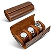 Leather Watch Travel Case for Men Women, Watch Roll Case Hold 3 Watches Storage Organizer with Removable Pillows Solid Dividers Flat Base Watches Holder for Home Travel Display