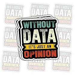 - 3 Pcs Without Data It's Just An Opinion Stickers – Funny Data Science Quote Decals for Analysts, Statisticians – Gifts for People Who Love Data and Logic – for Laptop, Water Bottle, Tumbler – 3"x3" Our premium vinyl sticker is designed to be fully waterproof, making it an excellent choice for use in damp or humid environments. Whether applied to water bottles, car windows, laptops, or even boats, it maintains its durability and adhesion without peeling or fading. This makes it perfect for both indoor and outdoor use, no matter the weather conditions.With built-in UV protection, this sticker resists damage from sunlight, rain, and wind, ensuring long-lasting vibrancy and color retention. Unlike ordinary stickers that fade over time, our high-quality materials help maintain a fresh and bold look even after prolonged exposure to outdoor elements.Durability is a key feature of our sticker. Made from thick, scratch-resistant vinyl, it is designed to withstand daily wear and tear while maintaining its appearance. Whether placed on a frequently handled surface or exposed to rough conditions, the sticker remains intact and visually appealing.Precision die-cutting technology ensures that each sticker is cut with crisp, clean edges, highlighting intricate details in the design. This advanced cutting process allows for customization, making it easy to create a sticker that suits your specific needs while maintaining professional quality.Applying the sticker is a simple and hassle-free process. Just peel off the backing and stick it onto any smooth surface—no special tools or techniques required. It adheres securely while also being easy to remove without leaving behind sticky residue, allowing you to reposition or replace it as needed.