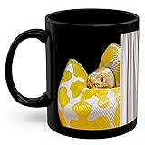 Funny Yellow Ball Python Coffee Mug 11oz Black - Cute Peeking Behind Curtain Large Ceramic Cup - Novelty Gifts for Python Lovers