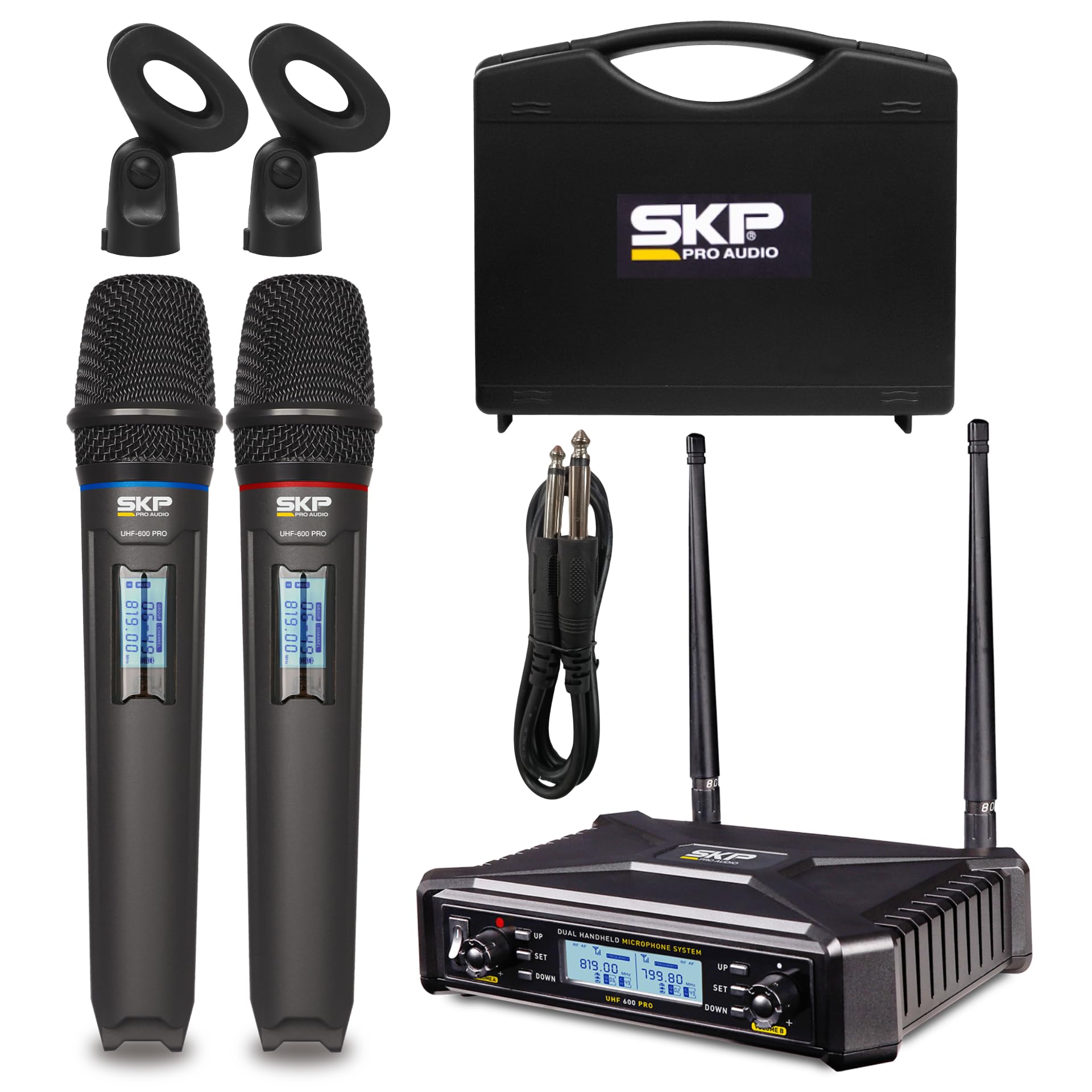Dual Wireless Microphone System Auto-Scan Long Range Mic Set with Receiver, LCD Display, XLR Output 2x300 CH – Professional Mic for Singing, Karaoke, DJ, Classroom, Speech SKP UHF-600 PRO