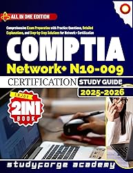 - CompTIA Network+ N10-009 Certification 2025–2026: The Complete 2-in-1 Guide – Strategies, Practice Tests, and Study Resources for Network ProfessionalsYour All-in-One Guide to Master the Network+ N10-009 ExamWhether you're launching your IT career or strengthening your networking credentials, this 2-in-1 guide is your ultimate preparation tool for the CompTIA Network+ N10-009 exam. Covering both foundational concepts and advanced practice, it’s designed to help you pass the exam—and thrive in real-world networking roles.✅ What’s Inside This Comprehensive Study Guide: ✔ Core Networking Concepts Made SimpleIn-depth coverage of key topics: OSI model, TCP/IP, IPv4/IPv6, DNS, DHCP, subnetting, and moreLearn about networking hardware, virtualization, cloud technologies, and wireless standardsUnderstand the principles of network security, VPNs, firewalls, risk management, and access control✔ Practice That Mirrors the Real ExamHundreds of realistic practice questions modeled on the N10-009 examDetailed answer explanations to reinforce learningFull-length exam simulations to boost confidence and identify weak spots✔ Test-Taking & Study StrategiesProven study plans for all timelines (last-minute or long-term)Time management techniques and tips to reduce stress on exam dayStep-by-step guidance on approaching multiple-choice questions and performance-based scenarios✔ Built for Beginners and Career-ChangersEasy-to-follow explanations for those new to networkingPractical examples and diagrams to make technical concepts stickPerfect for self-study, classroom use, or training bootcamps📘 Why This Book Works: This is more than a textbook—it’s a training system. You’ll review the theory, apply it through testing, and sharpen your approach to real-world problem-solving. It’s a complete Network+ exam prep toolkit—all in one place.🎯 Get Certified. Get Hired. Get Ahead.Whether you're preparing for your first IT certification or leveling up in your tech career, this guide will help you pass the CompTIA Network+ N10-009 exam with confidence and clarity.👉 Click Buy Now and start your journey toward Network+ certification today.