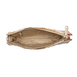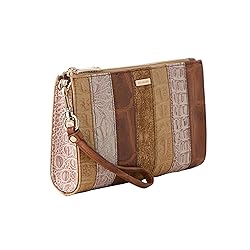 8.5" W x 5" H x 2" D / 21.6 cm x 12.7 cm x 5 cm Removable wristlet strap, 6” / 15 drop Genuine leather Interior zip pocket Pattern placement and texture may vary from what is pictured, as each item is unique Gold-tone hardware