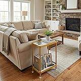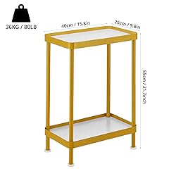 ZEXVIDA Small Narrow Side Table, 2 Tier End Table with Storage Shelf, Sofa Table for Small Spaces in Living Room, Bedroom, Office, Nightstand,Plant Stand (White+Gold)