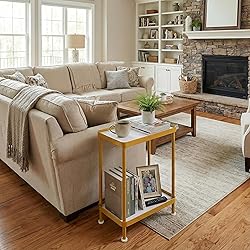 【Perfectly Sized for Small Spaces】Measuring a compact 15.8"L x 9.8"W x 21.7"H, this rustic 2-tier end table is designed to maximize space efficiency. Its slim profile fits snugly beside sofas, in bedroom corners, or in narrow hallways, offering essential storage and surface area without contributing to clutter. It's the ideal solution for apartments, dorms, and cozy homes. It's perfect for adding functionality to various spaces, such as bathrooms, hallways, living rooms, bedrooms, offices, and more. 【All-match Classic Appearance】The combination of retro wood grain panels and black painted metal, this low-key modern industrial style makes it perfectly integrated into any interior decoration style. This modern industrial style magazine side table is very suitable for your bedroom or living room, looks elegant and generous, and adds a touch of industrial style to your home. 【Remarkably Sturdy & Stable】Built to last with a robust iron frame and durable engineered wood, this table offers exceptional stability. Load the surface with items up to 100 lb, the storage shelf up to 50 lb, safely accommodating lamps, books, electronics, and more. The eco-friendly MDF board ensures both durability and style. We built a perfect balance from retro minimalism beauty and overall stability within this side table. 【Versatile Storage & Display】You can put it in many places as a sofa side table, bedside table, porch nightstand, farmhouse end table for your bedroom, living room, entryway, hall etc. Beyond a side table, it's a perfect plant stand for showcasing your favorite greenery! The spacious top tier holds drinks or decor, while the lower shelf organizes books or baskets. This versatile piece expertly helps declutter your space while keeping essentials—and your plants—thriving. 【Effortless Tool-Free Assembly】Enjoy a hassle-free setup. With all necessary hardware and a clear instruction manual included, you can assemble this tall end table quickly and easily—typically in under 20 minutes. No special tools are required, making the process straightforward for anyone.