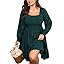 Womens Plus Size Dress Fall Casual Puff Long Sleeve Square Neck Empire Waist Tiered A-line Mini Short Dress