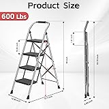 Step Ladder Foldable Folding Stool - for Home Adults Kitchen 4 Stepping Extension Tall Heavy Duty with Handrails - Closet Stepstool Stair Ladders Extendable Stepladder for Indoor House 600Lbs