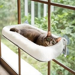 Hook Design for Convenient Storage: The built-in hook design allows for easy storage of cat accessories like combs, keeping your cat’s items organized and within reach. Strong Suction Cups: Equipped with 4 heavy-duty suction cups (44 lbs capacity) for a secure and stable attachment to windows, ensuring safety for your cat. Easy Tool-Free Installation: No tools required! Simply attach the suction cups to any clean, flat window surface (The window glass should be at least 24 inches wide), and your cat’s new favorite perch is ready to go. Soft & Comfortable Fabric: The hammock features a soft fabric cover that offers a plush resting spot for your cat to relax, with a cozy design that they’ll love. Washable & Easy to Clean: The fabric cover is machine washable, making it easy to keep the hammock fresh and clean for your indoor cat.