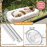 Cordless Cat Window Perch, Foldable Cat Window Hammock, 4 Strong Suction Cups, Solid Metal Frame, Patented Hook Design (Cushion White L)