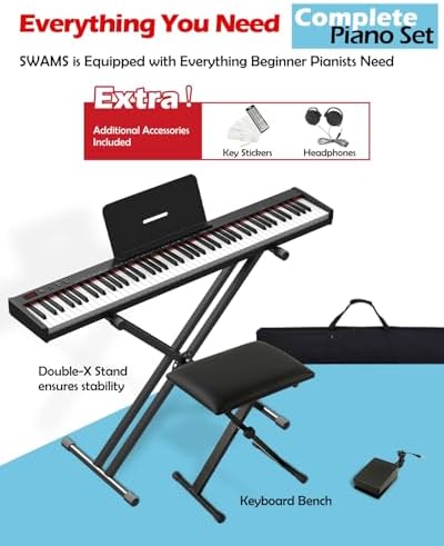 • 【Portable & Compact Design】 Weighing only 10.8 lbs and measuring 48.25" x 8.27", the SWAN-S digital piano is lightweight and space-saving—perfect for small rooms, travel, or classroom use. Easy to carry, no burden.