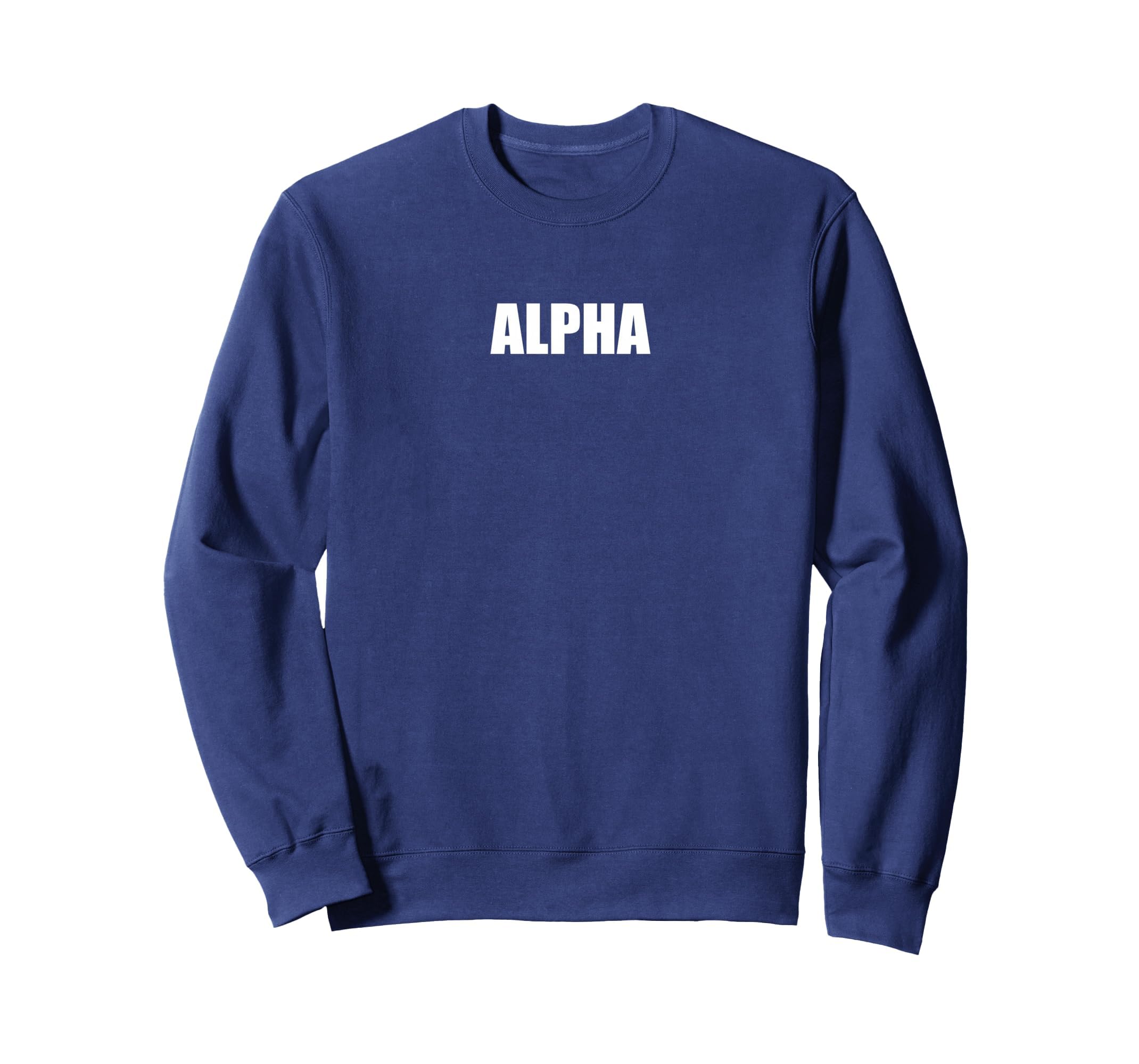Bold ALPHA typography design with modern, eye-catching appeal Striking lettering expressing personal style and unique perspective 8.5 oz, Classic fit, Twill-taped neck