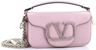 Valentino Garavani, Pre-Loved VLogo Loco Flap Shoulder Bag Leather with Crystals Small, Pink