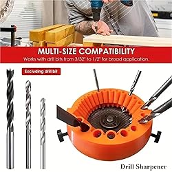 - Description Report Item Multi-purpose drill bit sharpener, polishing tool, 125mm angle grinder, fed tool bits for 2-13mm drill bits Features. Color options:Black/Green/Orange Material:High strength alloy + fatigue resistant plastic Compatibility:Drill bits from 1 mm to 13 mm (HSS, carbide, cobalt) Applications:Workshops, Construction Canteiros, DIY Projects.
