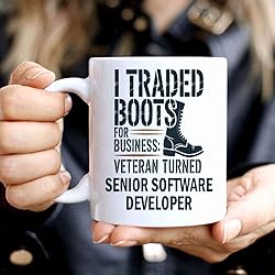Gift Design Idea Funny Gift for Senior Software Developer, for,i Traded Boots Business Turned Senior Software Developer 11 Oz White Ceramic Coffee Mug