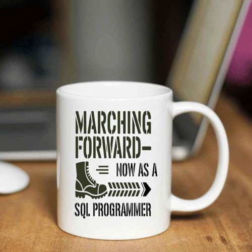 Humorous Gift Idea Gift Design for a Sql Programmer, for, Marching Forward as a Sql Programmer 11 Oz White Ceramic Coffee Mug