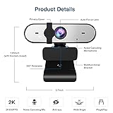 2K Webcam, Full HD Webcam for PC, Web Camera with Microphone, Tripod, Auto-Focus, Privacy Cover, USB, for Live Streaming & Video Conferencing
