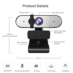 【2K Webcam】 【Webcam with Built-in Privacy Shutter】The webcam works with a USB-A port. No additional driver is required. The built-in privacy cover allows you to enjoy safe digital web life when not in use and prevents hackers from spying on you. It is perfect to provide privacy, security, and peace of mind to individuals, groups, organizations, companies, and governments. 【360 Degree Rotation】The PC Camera can be 360° Rotation, easy using, making it a breeze to find the perfect angle for any needing. our webcam includes a tripod which makes live streaming more convenient. 【2K Webcam with Fixed Focus:】The streaming webcam comes with 1080p Full HD, up to high definition 2560x1440 resolution at 60fps. Compared with a 1080p webcam, this 2K web camera can get a clearer video experience. 【Plug & Play Wide Compatibility】Connects to your computer by using USB cable, easy to use and requires no additional drivers or software. The usb camera is widely used for live social gaming and entertainment sites such as Youtube, Skype, Twitch, Xsplit, mix, Vlogging and is universally compatible with Windows XP/7/8/10/11, Mac OS, Linux, Chrome OS, Ubuntu, Android versions.