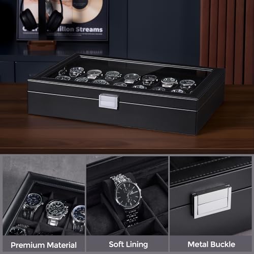 ProCase Watch Box for Men, 24 Slot Display Case with Real Glass Lid and Removable Pillows, Premium Storage Holder Organizer for Watch Collectors -24 Slot, AllBlack