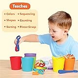 LEARNING & SORTING TOY: Skillmatics Silicone Rainbow Sorting is a hands-on activity that helps children build essential skills like color and shape recognition, counting, sorting, sequencing, and fine motor skills through interactive play. EDUCATIONAL ACTIVITIES FOR PRESCHOOLERS: Using easy-to-grip tongs, young children can pick up and arrange colorful shapes into their cups, boosting hand-eye coordination and dexterity while learning to sort colors and shapes. The fun expands with 4 double-sided activity boards featuring additional games like bingo, stacking, sequencing, and counting—providing hours of educational entertainment! INCLUDES: 48 Silicone Shapes, 6 Stackable Cups, 4 Double-sided Activity Boards, 2 Sturdy Tongs, Storage Bag, and a Learning Guide. CHILD-SAFE: The shapes are made from high-quality, odorless, non-toxic, food-grade silicone, free from harmful substances like BPA, Latex, Lead, PVC, and phthalates, ensuring safe, worry-free playtime. MULTIPLE GAMES TO PLAY: The learning guide offers a variety of games using silicone shapes and activity boards, helping children develop skills in sorting, sequencing, counting, stacking, and matching—all while playing! EASY TO USE & STORE: Designed by educators, this set provides engaging activities that keep kids entertained for hours. It also includes a convenient storage bag for easy cleanup and portability. PERFECT GIFT: A fantastic gift for birthdays, playdates, holidays, or any special occasion for kids aged 3 to 6, combining fun and learning in one! DEVELOP KEY SKILLS: Enhances fine motor skills, spatial reasoning, focus and attention, mental processing, process planning, and logical reasoning.