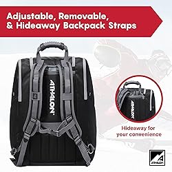 SPACIOUS STORAGE – This ski boot bag offers side compartments for boots with ventilation and a roomy center area for a ski helmet, gloves, goggles, and essential gear ALL-DAY COMFORT – Designed for ease of carry with padded backpack straps, cushioned back panels from Athalon, and a top handle for quick and comfortable transport DURABLE FEATURES – Includes ventilated boot pockets with drainage grommets and a waterproof bottom that protects your gear from snow, slush, or wet car trunks BUILT FOR WINTER TRAVEL – A rugged ski gear bag ready for mountain weekends, airline check-ins, or everyday seasonal storage DIMENSIONS & WARRANTY – Measures 17 x 15 x 14 inches with a 58.5-liter capacity and weighs 3.5 pounds; fits boots up to men’s size 13 and is backed by Athalon’s 5-year warranty