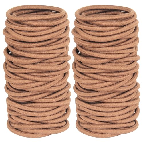 120 Count Beige Hair Ties Bulk Pack, Strong No Damage Elastic Hair Bands for Thick Hair, Seamless No Crease Ponytail Holders for Women, Girls, Sports & Everyday Use (4mm)