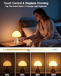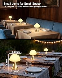 Cordless & Rechargeable Freedom: Enjoy up to 24–72 hours of continuous soft, warm light with this cordless lamp. The built-in rechargeable battery makes it a reliable battery operated table lamp and wireless lamp, perfect for bedside tables, patios, or emergencies during power outages. A stylish solution as a small kitchen counter lamp or elegant bathroom lamp without messy wires Touch Control & 3-Level Dimming: Adjust brightness with a simple touch—no knobs or switches. This dimmable lamp offers three settings (low, medium, high) to suit your mood, from a relaxing ambient lamp for cozy nights to brighter lighting for dinners. Works beautifully as a night light lamp or small touch lamp for effortless control Elegant Mushroom Style: This decorative mushroom table lamp adds charm and warmth to any room. Its opal ABS shade diffuses a gentle glow, while the gold base adds a touch of luxury. With its cordless mushroom design and non-slip base, it doubles as an accent lamp, entryway lamp, or modern entry table lamp to enhance your décor Compact & Portable Anywhere: Mini-sized yet stylish, this small table lamp fits perfectly in home offices, bookshelves, kitchen counters, restaurants, and bathrooms. Thanks to its cordless and battery powered design, it’s easy to move as a short table lamp for end tables or as a dinner table lamp to elevate gatherings and special occasions Ideal for Any Mood & Occasion: From daily use in the living room to creating an inviting glow outdoors, this battery table lamp sets the vibe. Whether hosting a family dinner, enjoying quiet patio nights, or decorating your dining room, this gold ambience lighting lamp is the go-to choice for a beautiful and customizable decorative lamp experience