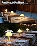 INTELIVE Small Cordless Mushroom Table Lamp, Mini Rechargeable Battery Powered Night Light, Touch Control Dimmable, Portable Gold Lamp for Kitchen Restaurant Dining Table Bathroom Patio