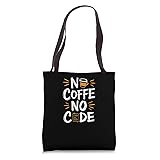 as a coffee lover and a programmer "no coffee no code" is your way of live. start slow in the morning with a hot cup of coffee before doing the computer stuff. 16” x 16” bag with two 14” long and 1” wide black cotton webbing strap handles. Made of a lightweight, spun polyester canvas-like fabric. All seams and stress points are double-stitched for durability, and the reinforced bottom flattens to fit more items and hold larger objects. Spot clean/dry clean only.