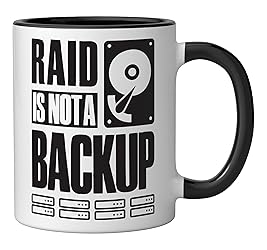 Are you a computer scientist or administrator and are active in the IT industry? Then this funny "RAID Is Not A Backup" saying is just right for you. Great gift idea for IT service forces, administrators, admins, programmers, nerds and technicians! Perfect for a colleague or work colleague working in IT, software development or customer support. Ideal for birthdays, Father's Day, anniversaries or anniversaries 11-ounce ceramic mug is dishwasher and microwave-safe, lead and BPA free Features glossy finish with accent colors on interior, handle, and rim of two-tone designs