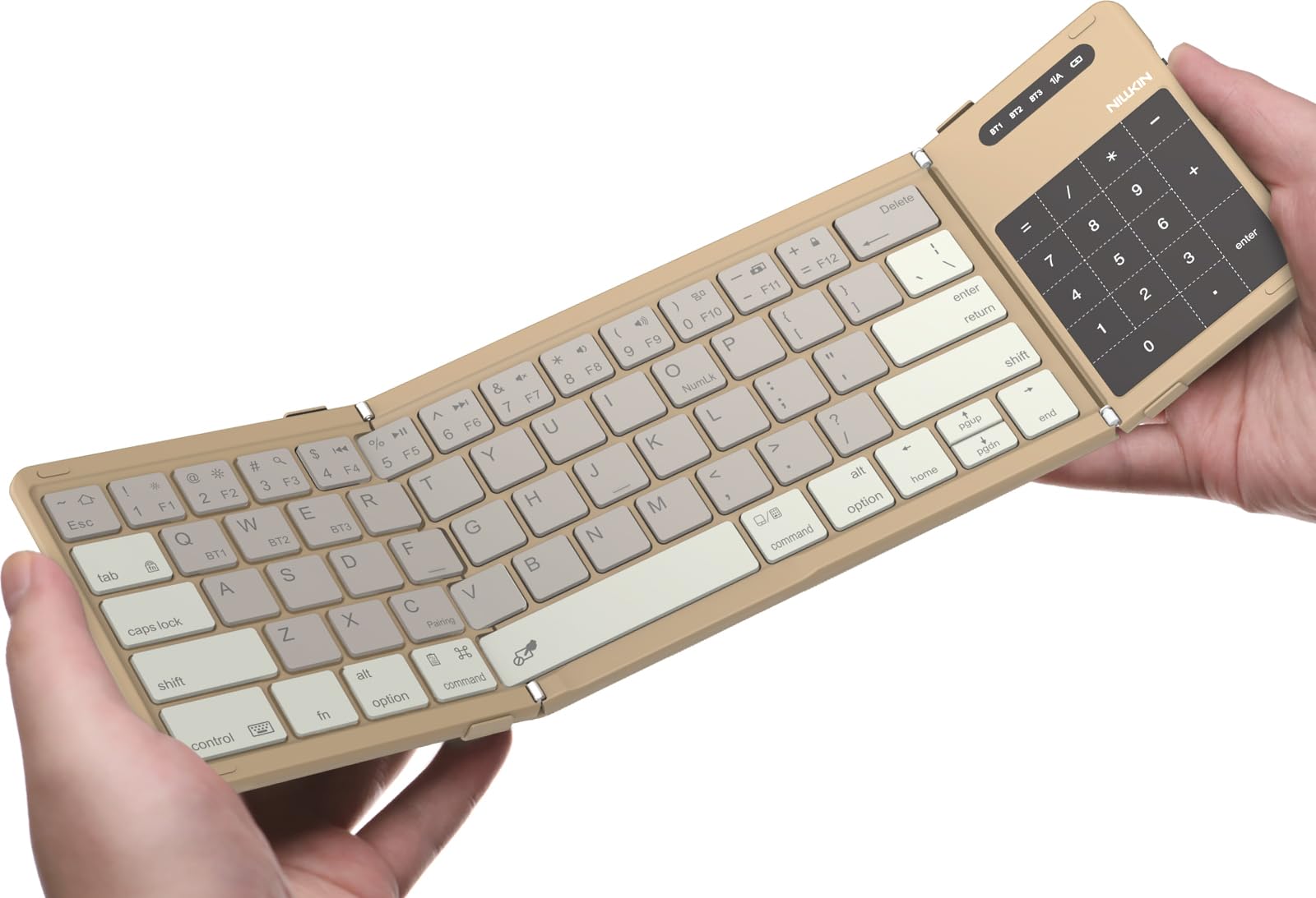 - Full-Size Foldable Bluetooth Keyboard: This Nillkin pocket-sized foldable keyboard weighs only 8 oz, with a compact folded dimension of 7.1 x 4.2 in, making it easy to carry around or store in a briefcase without taking up much space. It offers maximum convenience with minimal weight and size!