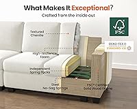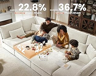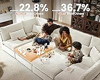 【Cloud Oversized with Extra Deep Seating】Experience unparalleled comfort with MONACAR’s oversized modular sofa, designed with an impressive 42" deep seating. Its generous dimensions offer a plush sanctuary for lounging, reading, or napping, making every moment at home feel like a soft escape. Perfect for spacious living rooms, this cloud sofa invites you to sink in and unwind 【Fully Modular for Your Lifestyle】Transform your space effortlessly with MONACAR’s completely modular design. Each piece can be easily reconfigured—whether it’s a U-shape for family movie nights or an L-shape for intimate gatherings, or even a bed for overnight guests. This sofa adapts to your needs, offering endless possibilities without the hassle of tools. Create your perfect setup and enjoy the flexibility 【Tool-Free Assembly for Instant Enjoyment】Set up your MONACAR sofa in 30 minutes without the need for tools. The modular design allows for quick and easy assembly, letting you customize your space without hassle. Perfect for those who value both convenience and comfort, this sofa is ready to be enjoyed from the moment it arrives 【Crafted for Durability and Style】Built to last, MONACAR’s frame is constructed from kiln-dried hardwood, designed to offer long-lasting stability. High-density foam cushions provide superior comfort without sacrificing resilience, ensuring that your sofa remains a stylish centerpiece in your home for years to come. The inner frame is made of FSC-certified wood 【Pet-Friendly and Family Safe】MONACAR's design considers every member of your household, including pets. The sturdy materials resist scratches, making this sofa durable enough for pets while remaining soft and comfortable for everyone. With safety in mind, the materials are carefully selected to be gentle on the skin and safe for daily use 【Six Packages, Stay Notified!】 Your sofa ships in 6 packages, if you receive only some boxes, don't worry—additional ones are on the way. Any questions? Feel free to reach us—CHIC HOUSE support team is here to help