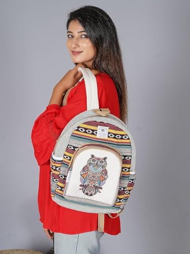Small Lightweight Daypack Hemp Backpack Owel Handmade Himalayan Bohemain Travel Hiking Bag 13 x 10 x 4 Inches