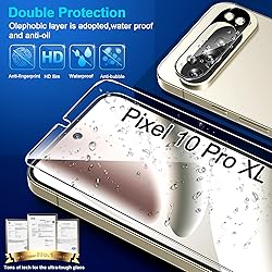 6 Pack: You will get 3 pack screen protectors and 3 pack camera lens protectors are both made of High-quality Tempered Glass for Google Pixel 10 Pro XL (6.8"). Unlock with ease using either Fingerprint or Face Recognition technology. Enjoy a natural, "True Touch" experience thanks to superior sensitivity It is 100% brand new, Precise laser cut Full Glue Sticky tempered glass and will not fall off, exquisitely polished, 2.5D rounded edges technique makes curved edges of the film to perfectly fit curved corners and edges of the phone, 1.4 mm margin around the edge of the device to be compatible with MOST cases Upgrade 10X Military Shockproof with edge strengthening design, with Ultra-high 9H hardness and 3X Stronger Scratch resistant for maximum resistance against impacts and scratches from objects.Easy Installation and Bubble-Free, Removing dust and aligning it properly before actual installation, One-touch ultra-light automatic adsorption installation, no foam at all Night shooting made easy: This camera lens protective film is custom designed for the Pixel 10 Pro XL 6.8 Inch display. It seamlessly integrates augmented reality technology for improved light transmittance and night shooting capabilities. this protector restores the original quality of photos and videos even when using the flash at night It adopts premium quality AGC glass materials, thus creating an oil-resistant, anti-fingerprint, Highly durable, and scratch-resistant surface that is easier to clean and protect against sweat effectively, and enhance the visibility of the screen and 99.99% HD clarity