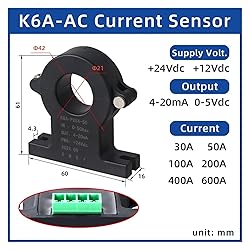 - Hall Effect Current Sensor Input DC 50A-600A Output 4-20mA 5V 4V 10V Current Transducer Hign-concerned Chemical : None Coil Structure : Toroidal Model Number : K6D Coil Number : Autotransformer Phase : SINGLE Certification : RoHS,UL Use : Current Current Input : DC 50~500A Ouput : 0-5V 0-4V 0-10V 4-20mA through hole : 21mm Measure current : Alternating current output current : Direct current working frequency : 20Hz~20KHz Output way : Terminal