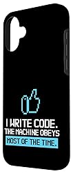 Perfect for software engineers, coders, and programming nerds who love sarcastic humor. Great for developers, computer geeks, and anyone with a passion for coding. Fun and witty design for work or casual wear. I write code. The machine obeys… most of the time. Ideal for birthdays, holidays, or any special occasion for programmers, software engineers, and tech lovers. Great for friends, coworkers, or family who enjoy coding and clever computer sayings Two-part protective case made from a premium scratch-resistant polycarbonate shell and shock absorbent TPU liner protects against drops Printed in the USA Easy installation