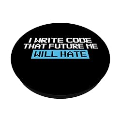 Perfect for software engineers, coders, and programming nerds who love sarcastic humor. Great for developers, computer geeks, and anyone with a passion for coding. Fun and witty design for work or casual wear. I write code that future me will hate. Ideal for birthdays, holidays, or any special occasion for programmers, software engineers, and tech lovers. Great for friends, coworkers, or family who enjoy coding and clever computer sayings Adhesive backing attaches the PopGrip to your case or device. Will not stick to silicone, leather, waterproof, or highly textured cases. Works best with smooth, hard, plastic cases. Not compatible with wireless charging Printed top is swappable with other compatible PopGrip models. Just press flat, turn 90 degrees until you hear a click and remove to swap.
