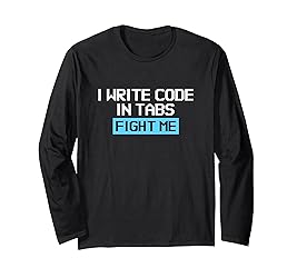 Perfect for software engineers, coders, and programming nerds who love sarcastic humor. Great for developers, computer geeks, and anyone with a passion for coding. Fun and witty design for work or casual wear. I write code in tabs. Fight me. Ideal for birthdays, holidays, or any special occasion for programmers, software engineers, and tech lovers. Great for friends, coworkers, or family who enjoy coding and clever computer sayings Lightweight, Classic fit, Double-needle sleeve and bottom hem