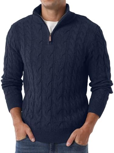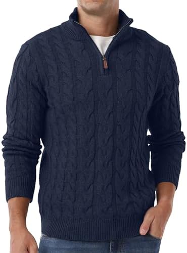 Askdeer Men's Quarter Zip Sweater Cable Knit Mock Neck Pullover Sweaters Classic Casual Polo Sweater
