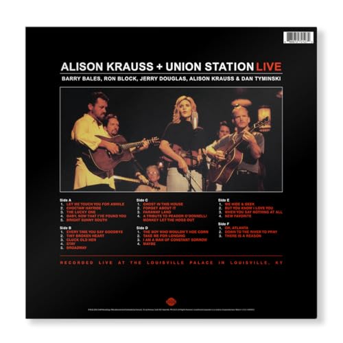 The long out-of-print GRAMMY-winning Live album perfectly captures the emotive musicianship displayed in the Alison Krauss & Union Station's live shows. This 3-LP set, pressed on 180g vinyl and housed in a triple gatefold, features fan favorites "Baby, Now That I've Found You," "The Lucky One," the GRAMMY-winning "Cluck Old Hen" and many more. Recorded in 2002 in Louisville, KY, the album hit #1 on the Top Bluegrass Albums. BBC called the multi-platinum collection "an album of superlatives."