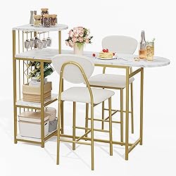 - Dining Table Set for 2, 3-Piece Expandable Bar Table and Chairs Set, with Storage Shelves and Wine Rack, Small Kitchen Dining Set for Living Room, Apartment
