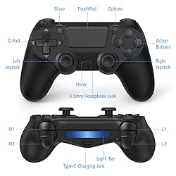 Universal Compatibility - Designed for PS4 consoles (SLIM/PRO). Supports PC via Bluetooth (press "SHARE+HOME" for 3 seconds). Plug-and-play via USB C cable, no drivers needed. Stable Connection - Enjoy 33ft wireless freedom via advanced Bluetooth. Ultra-low latency ensures real-time response for competitive gaming. 20hs Marathon Battery - Equipped with 1000mAh rechargeable battery. Play 2times longer than standard controllers with 3hs quick charging. Enhanced Tactile Control - Dual vibration motors & precision-tuned analog sticks deliver immersive feedback. Ergonomic textured grip prevents slippage. Package Includes - 2 wireless controllers, 2 USB C charge cables, 1 user manual. Christmas gift