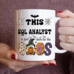 - Celebrate Halloween with spooky charm and daily coffee bliss! Our 11oz white ceramic mug features a fun Here for the Boos design, perfect for any Sql Analyst who loves coffee, tea, or hot cocoa. With pumpkins, bats, spiderwebs, and festive colors, it’s a seasonal favorite for fall drinkware lovers. Perfect for Everyday Use – Made from durable ceramic that’s dishwasher safe and microwave safe, this mug makes busy mornings, work breaks, and cozy evenings effortless. Great Gift for Any Sql Analyst – Whether it’s a coworker, friend, or family member, this Halloween Sql Analyst coffee mug is a thoughtful and practical gift for school events, office parties, or autumn gatherings. More Than Just a Mug – Use it as a pen holder, desk accessory, or festive home decoration to bring Halloween cheer to any space. Bring a smile to your favorite Sql Analyst this Halloween with a mug that’s as fun as it is functional!