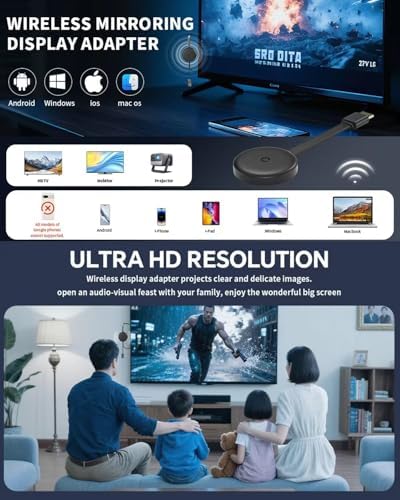 - 【Broad Compatibility: iOS / Android / Windows / macOS】Works with a wide range of devices including iPhones, iPads, Android phones, tablets, Windows laptops, and MacBooks. Supports Miracast, AirPlay, and DLNA for maximum compatibility with smart TVs, monitors, and projectors.