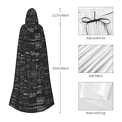 - Size: Length 59inch/150cm, Cap Height 16inch/40cm(Refer to the display diagram for detailed dimensions) Material: soft polyester fiber. PRODUCT DESCRIPTIOS: Easy to clean, Machine wash and hand wash. With oversized cap cloak, with bow tie, no zipper, easy to wear,suitable for various occasions you want. Non-itchy fabric: Super large size suitable for most people's can provide you with a sense of comfort during rest Application: Suitable for Halloween, cosplay costumes, stage costumes, masquerade parties, theme parties, balls, comic shows, etc., can be used for parties, carnivals, Halloween, costume parties, etc. WARM TIPS: Any other questions, please feel free to contact us, we will try our best to solve it to you. This hooded cloak is perfect for a variety of occasions, including masquerade parties, theme parties, dances, and comic book exhibitions. It's also a great choice for carnivals, costume parties, and other festive gatherings. Easy to care for, it can be machine or hand washed, ensuring it remains and fresh for future use.